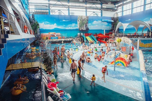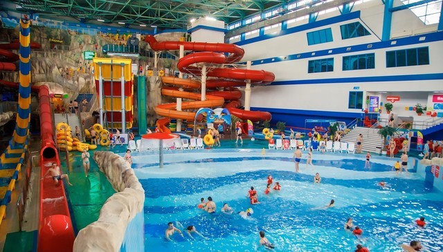 В аквапарке Функционирует двадцати пятиметровый плавательный бассейн с четырьмя дорожками. Здесь проходят индивидуальные посещения, обучение плаванию, занятия аква аэробикой и тренировки для будущих мам.